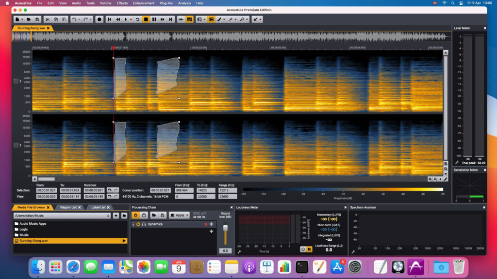 Acoustica Premium Edition 7.3 incluye cuatro nuevos plug-ins para la postproducción de diálogos basados en el aprendizaje profundo que también se integran perfectamente en la aplicación. Extract:Dialogue extrae automáticamente el diálogo de una variedad de fuentes de ruido comunes. Es posible una reducción de ruido más específica con DeWind: Dialogue, DeRustle: Dialogue y DeBuzz: Dialogue. Las selecciones de frecuencia de tiempo en el poderoso editor espectral de la Edición Premium ahora se pueden cambiar de tamaño y mover. También es posible fusionar selecciones de rango de frecuencia o tiempo con otras selecciones de herramientas manteniendo presionada la tecla shift.