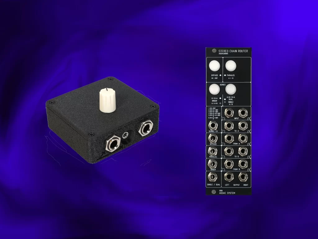 Con el Stereo Chain Router ADDAC809S, los usuarios pueden rutear cualquier fuente estéreo (audio o dos señales CV) a través de dos cadenas diferentes de uno o más módulos hacia una salida estéreo directa.
