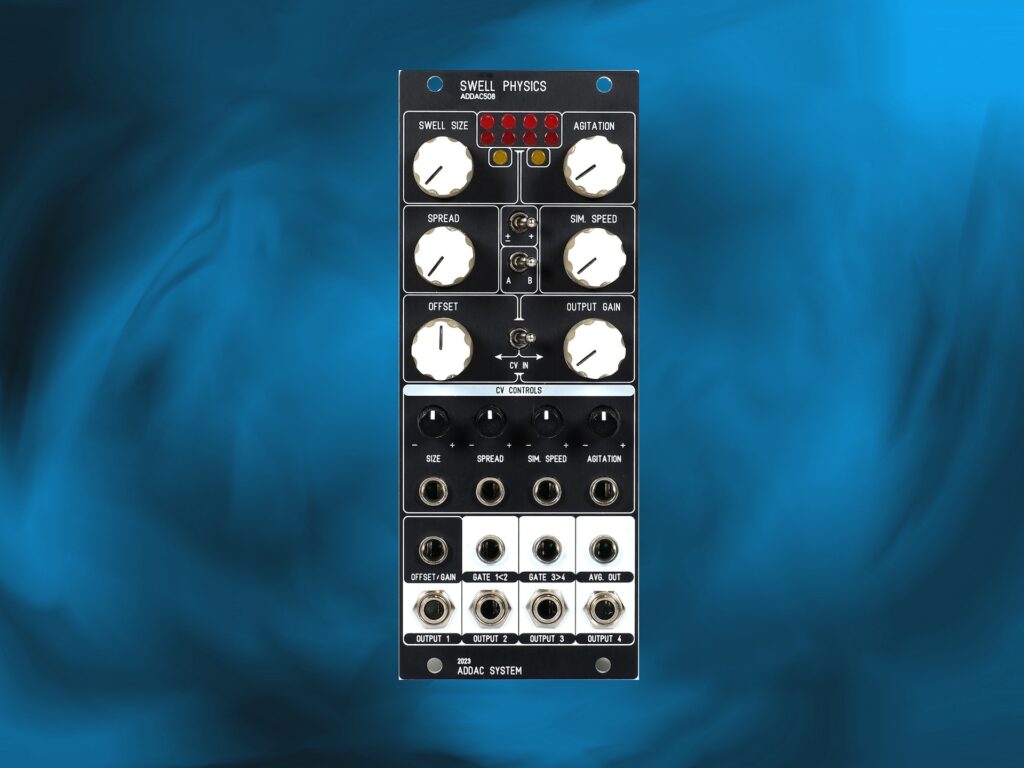 ADDAC System anuncia su última innovación en síntesis modular Eurorack: el Swell Physics ADDAC508. Swell Physics sigue el prestigioso ADDAC503 Marble Physics y presenta una nueva simulación de un sistema físico. Para comenzar, imagina que estás en un área pequeña en medio del océano.