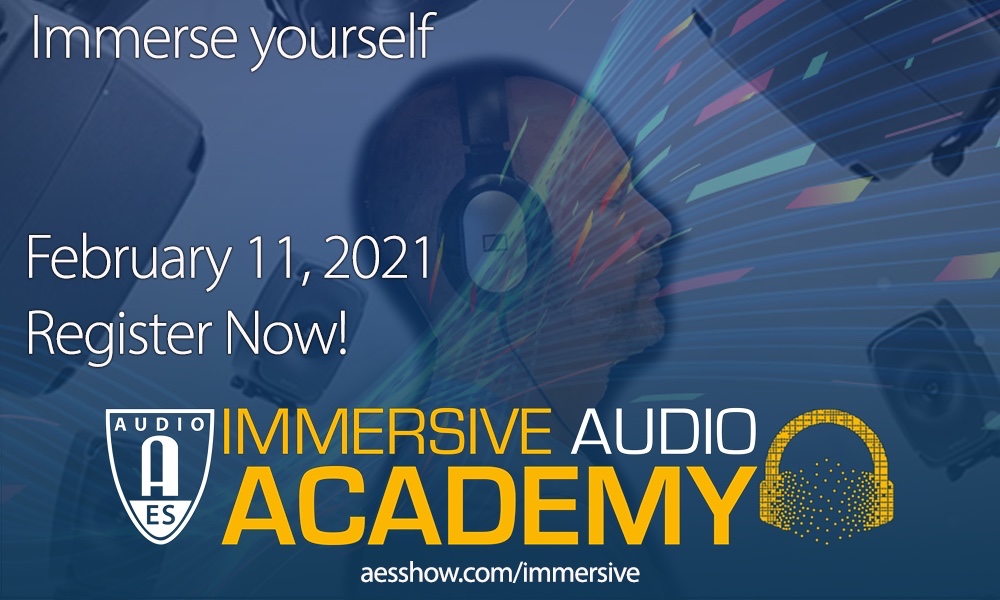 Ya está abierta la inscripción para la primera Academia de Audio Inmersivo de la Audio Engineering Society (que tendrá lugar el jueves 11 de febrero de 12:00 p.m. a 9:00 p.m. ET), un evento en línea de un día que lanza una serie centrada en las últimas tecnologías de producción y emergentes en audio inmersivo y binaural. Las sesiones del taller y la clase magistral del programa abordarán diversas aplicaciones de producción de audio inmersivo, desde eventos en vivo hasta juegos, películas y más, y los participantes recibirán un certificado de logro después de completar las sesiones. El evento está patrocinado por Genelec (Gold Partner), Dolby Atmos® (Silver Partner) y Bronze Partners, Fraunhofer, L-Acoustics, New Audio Technology y Sound Particles. El registro cuesta solo $ 49 para miembros de AES ($ 99 no miembros) y los miembros también reciben acceso a la reproducción a pedido de las sesiones de la Academia.