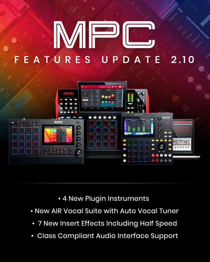 Dado que la actualización 2.10 es la más significativa en la historia de MPC, la experiencia de MPC independiente ha evolucionado exponencialmente. El Gerente de Producto Senior de Akai Professional, Dan Gill, declaró: “La actualización de funciones de MPC 2.10 es la versión de firmware/software más importante que hayamos entregado. Ser el primero en el mercado con una suite de procesamiento vocal, que incluye un plug-in de afinación vocal automática para usuarios independientes de MPC, es emocionante y algo en lo que hemos trabajado mucho. La combinación de eso con 14 nuevos plug-ins y la capacidad de conectar hasta 32 entradas y salidas con dispositivos USB class compliant compatibles revela un nuevo potencial creativo para los usuarios de MPC”.