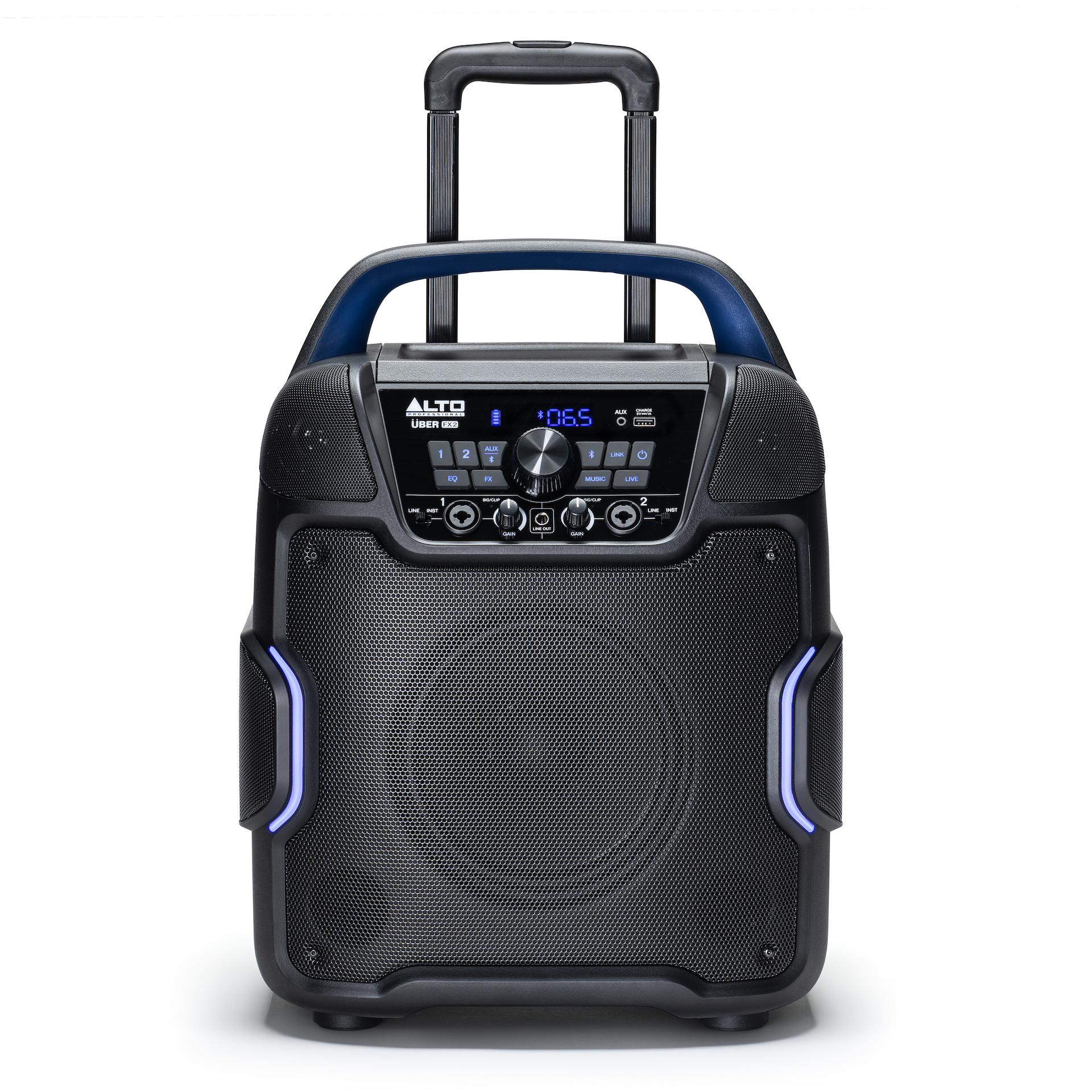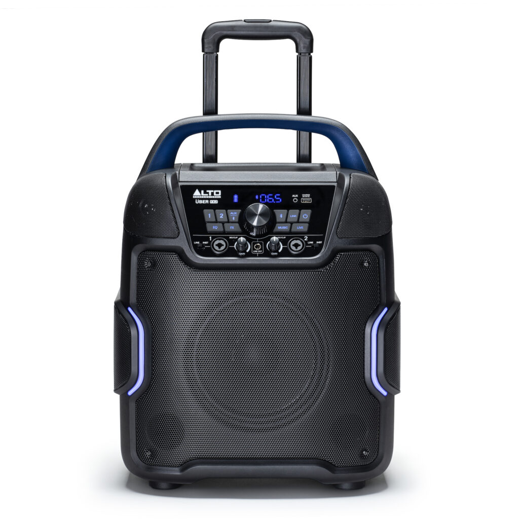 Con una impresionante duración de batería de hasta 100 horas, el UBER FX2 promete un rendimiento de audio ininterrumpido. Equipada con ruedas y un mango telescópico, la unidad está diseñada para la movilidad, lo que la hace cómoda de usar mientras viaja. La tecnología Bluetooth 5.0 facilita la transmisión desde casi cualquier dispositivo, mientras que la integración con la aplicación móvil Alto brinda control adicional sobre el emparejamiento, el ecualizador y la configuración de volumen, para equilibrar su mezcla de forma remota.