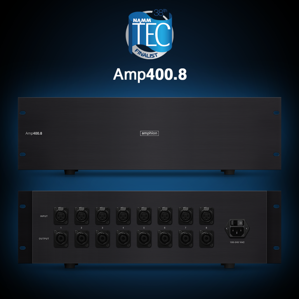 Amphion, un fabricante finlandés de altavoces, ha anunciado que su amplificador de potencia multicanal AMP400.8 ha sido nominado para un premio por Logros técnicos sobresalientes de la Fundación NAMM en su 38º Premio Anual a la Excelencia Técnica y la Creatividad (TEC). El Amp400.8 fue nominado en la categoría de amplificación/estudio y refuerzo de sonido. Esto marca el segundo año consecutivo en que un producto Amphion ha sido seleccionado como finalista del Premio TEC, con el BaseTwo25 ganando ese honor en la categoría de Monitor de Estudio el año pasado.