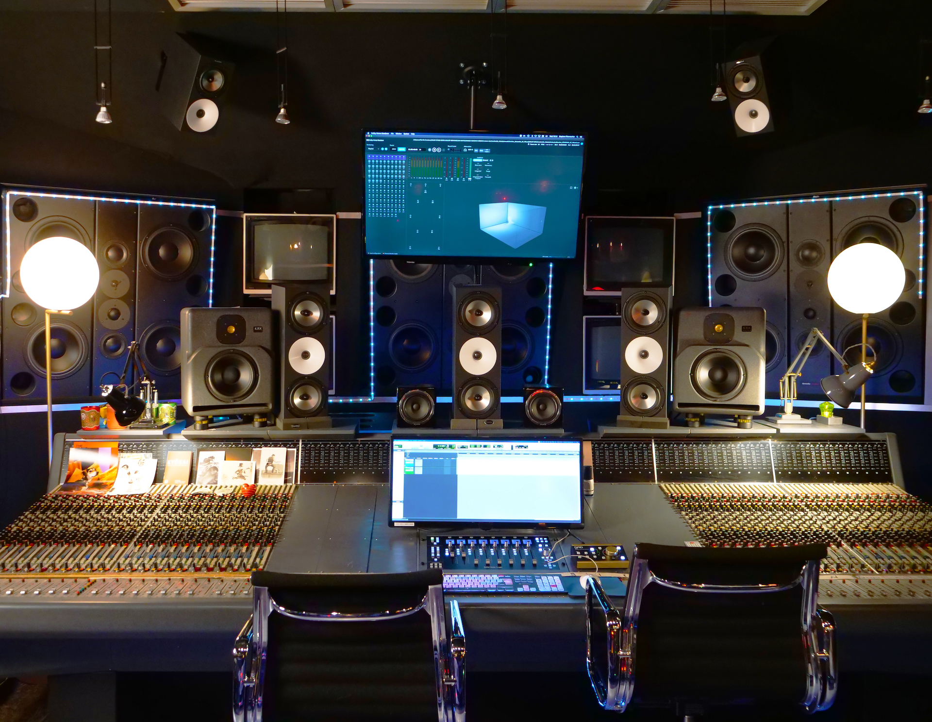 Los monitores finlandeses dispuestos en una configuración 7.1.4 ofrecen al ingeniero de mezclas una flexibilidad total para mezclas estéreo dinámicas y Atmos