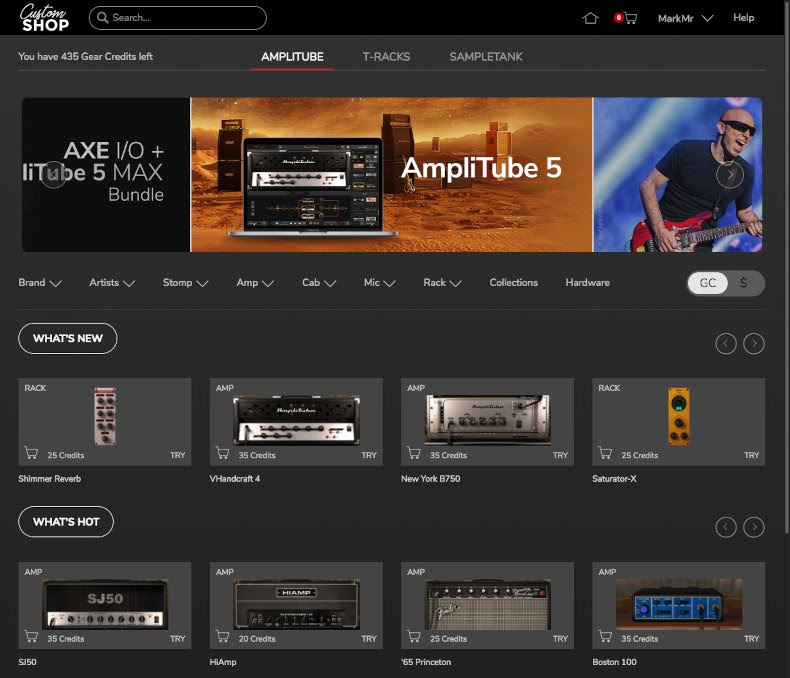 AmpliTube Custom Shop ofrece una forma fácil y asequible de probar y crear una colección de equipamiento personalizado a la carta. AmpliTube 5 cuenta con una Custom Shop totalmente rediseñada con una interfaz más moderna y fácil de navegar que ayuda a los usuarios a probar y desbloquear equipamiento más rápido, desbloquear equipamiento específico por presets y más.