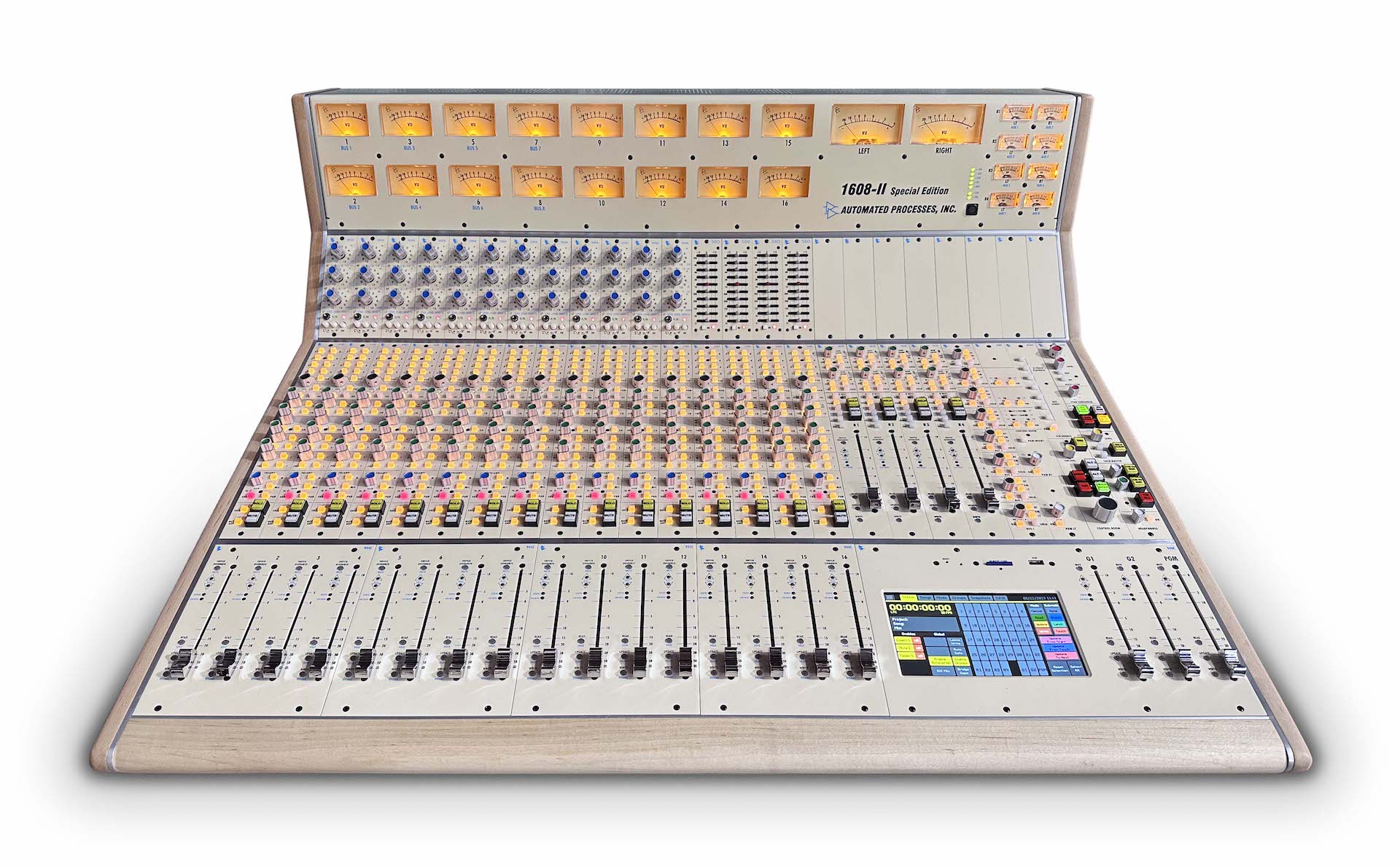 API anunció el lanzamiento inmediato de la consola 1608-II Special Edition, marcando el 15º aniversario de la increíblemente versátil y exitosa 1608. La 1608-II Special Edition presenta el color crema de estilo vintage usado por numerosas consolas API icónicas y está acentuada con rubio. Paneles laterales de arce, refuerzo y moldura del puente del medidor. Cada consola también está cargada con módulos API 550A y 560 EQ correspondientes, y está equipada con Final Touch Automation® de API.