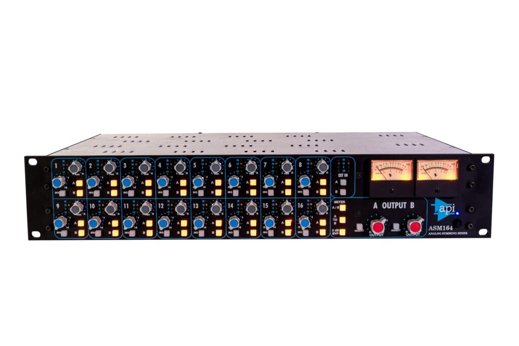“A medida que continuamos disfrutando del éxito con THE BOX, reconocemos que muchos clientes simplemente no tienen espacio para una consola”, comentó el presidente de API, Larry Droppa, dijo: “El nuevo ASM164 ofrece la potencia de suma que necesitas con todo el sonido API que esperas. Además, las características convenientes como el 0dB y las inserciones en cada canal hacen que este sea un gran complemento para tu flujo de trabajo”.