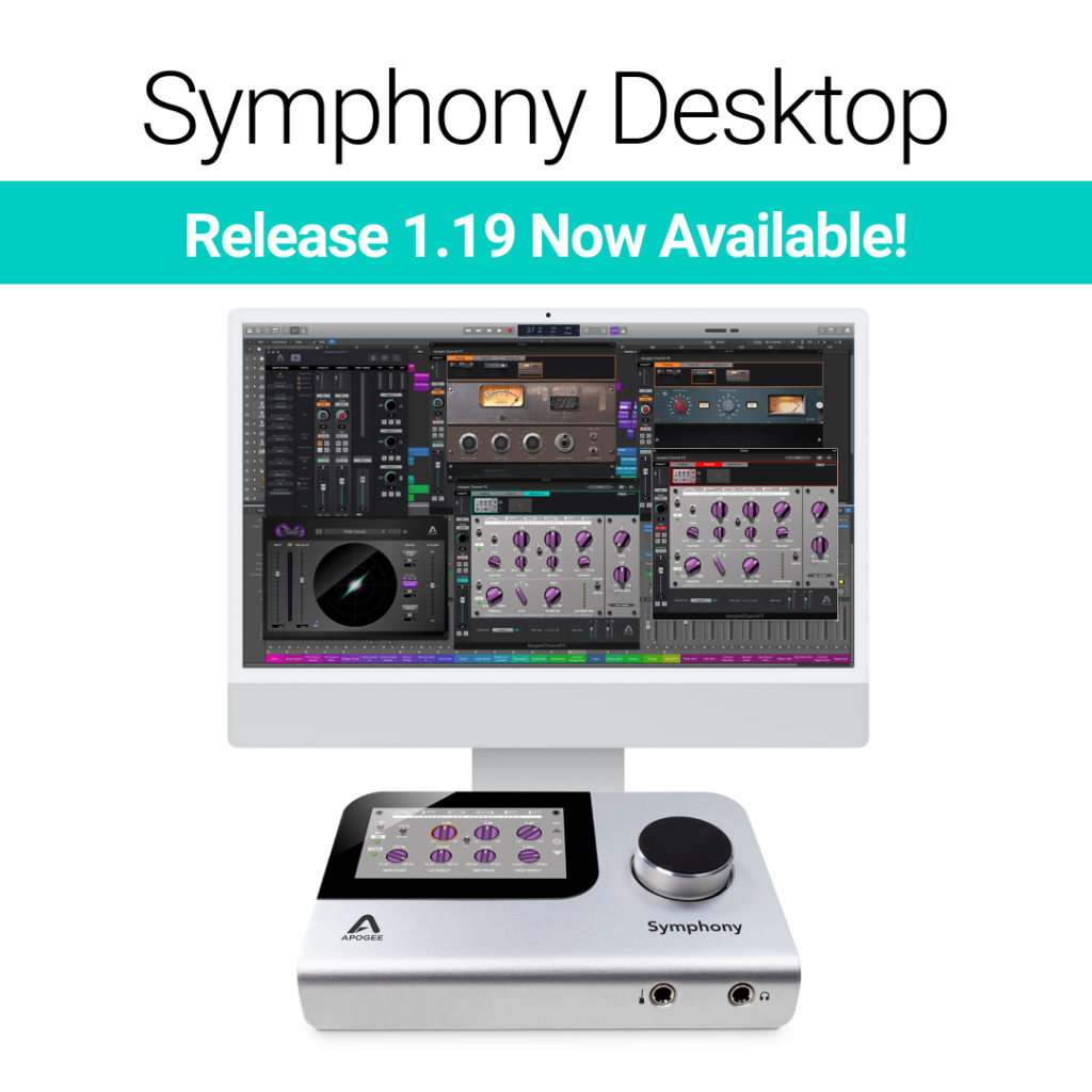 Apogee anunció el lanzamiento de la versión 1.19 del software para Symphony Desktop, su interfaz insignia de audio para estudios domésticos. Esta versión presenta el software de control Apogee y el plug-in Apogee Channel FX que le permite configurar un flujo de trabajo híbrido DSP + nativo desde su DAW usando el modo DualPath Link.