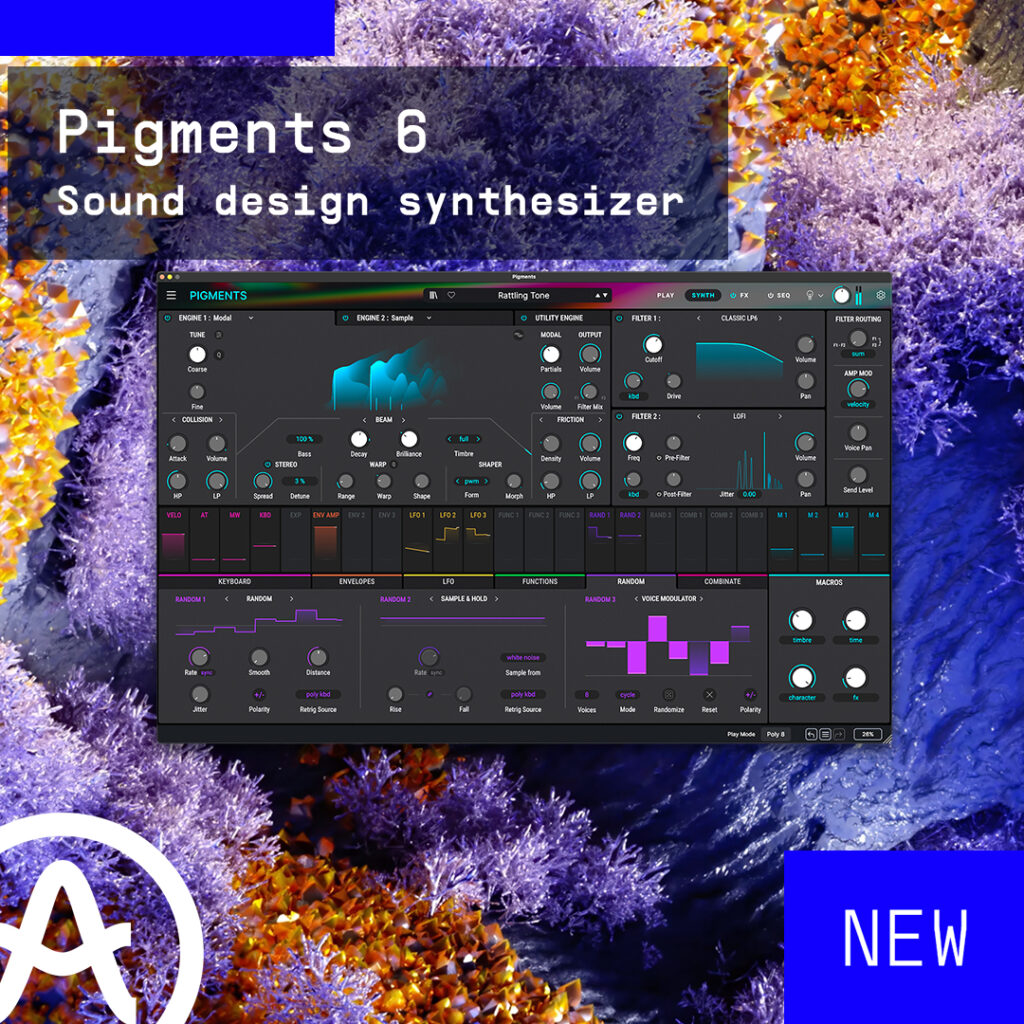 Con Pigments 6, los usuarios pueden explorar el nuevo motor modal, filtros refinados, un efecto de vocoder completamente nuevo, funcionalidad granular mejorada, nuevas posibilidades de modulación y una serie de mejoras adicionales, todas diseñadas para llevar el diseño de sonido multimotor a nuevas alturas.