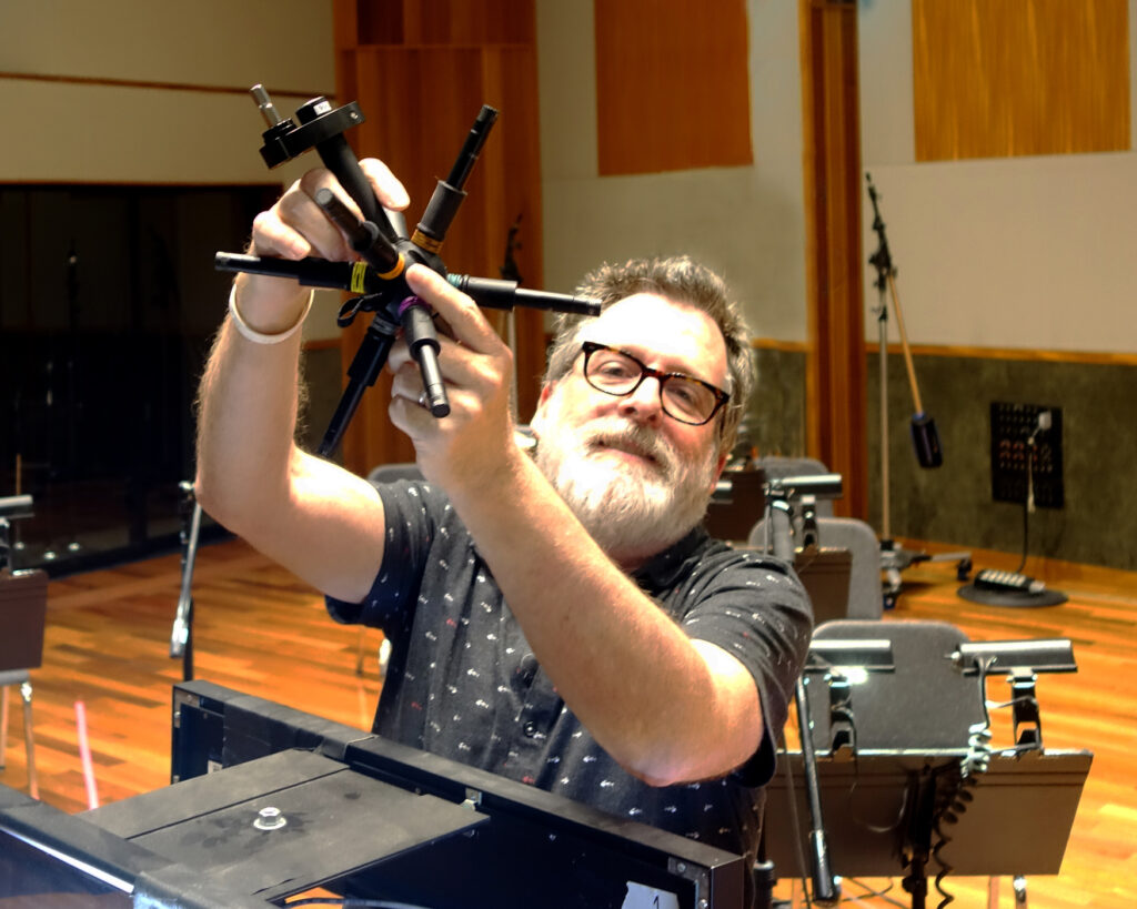 “Toda la grabación se realizó aquí en el Waystation Studio, con la excepción de la fecha de la sección de cuerdas que hicimos en Silent Zoo Studios en Glendale, California”, declaró Way. “Hace poco leí sobre el nuevo micrófono de audio inmersivo 3600 de A-T y pensé que sería perfecto para capturar cuerdas. Hacer cuerdas para una mezcla Atmos generalmente implica colocar micrófonos más distantes y usar micrófonos de sala ambiental dedicados para difundir la imagen, pero realmente no trata las alturas de una manera que sea coincidente y cronometrada de una manera realista”, comentó Way. “Después de mirar el 3600, inmediatamente pensé: ‘Wow, esto parece algo que podría ser genial para muchas cosas, pero definitivamente para cuerdas u otros conjuntos en una habitación grande y tal vez incluso algo en una habitación más pequeña. Y me intrigaban las aplicaciones para las que ya se había utilizado, que eran eventos deportivos, captura de ambiente y multitudes, etc.”