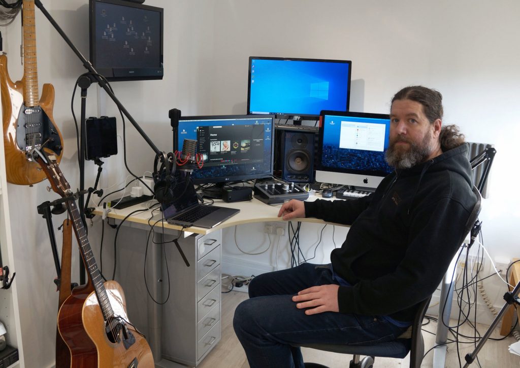 Al describir su configuración doméstica, que ya se basaba en una interfaz de audio Audient iD22 como “bastante decente”, explica cómo ha aprovechado algunas de las características de la nueva interfaz de audio EVO 4 para ayudarlo a enseñar de forma remota. “Más recientemente, he estado usando Audio Loop-back con nuestro sistema de videoconferencia de Virtual Learning Environment (usamos Beebop, que ha sido fantástico para obtener nuestros cursos en línea tan rápido) y puedo rutear el audio directamente desde el DAW a la conferencia . Me permite ofrecer lecciones en vivo, con una calidad de sonido decente y video chat directo con los estudiantes”.