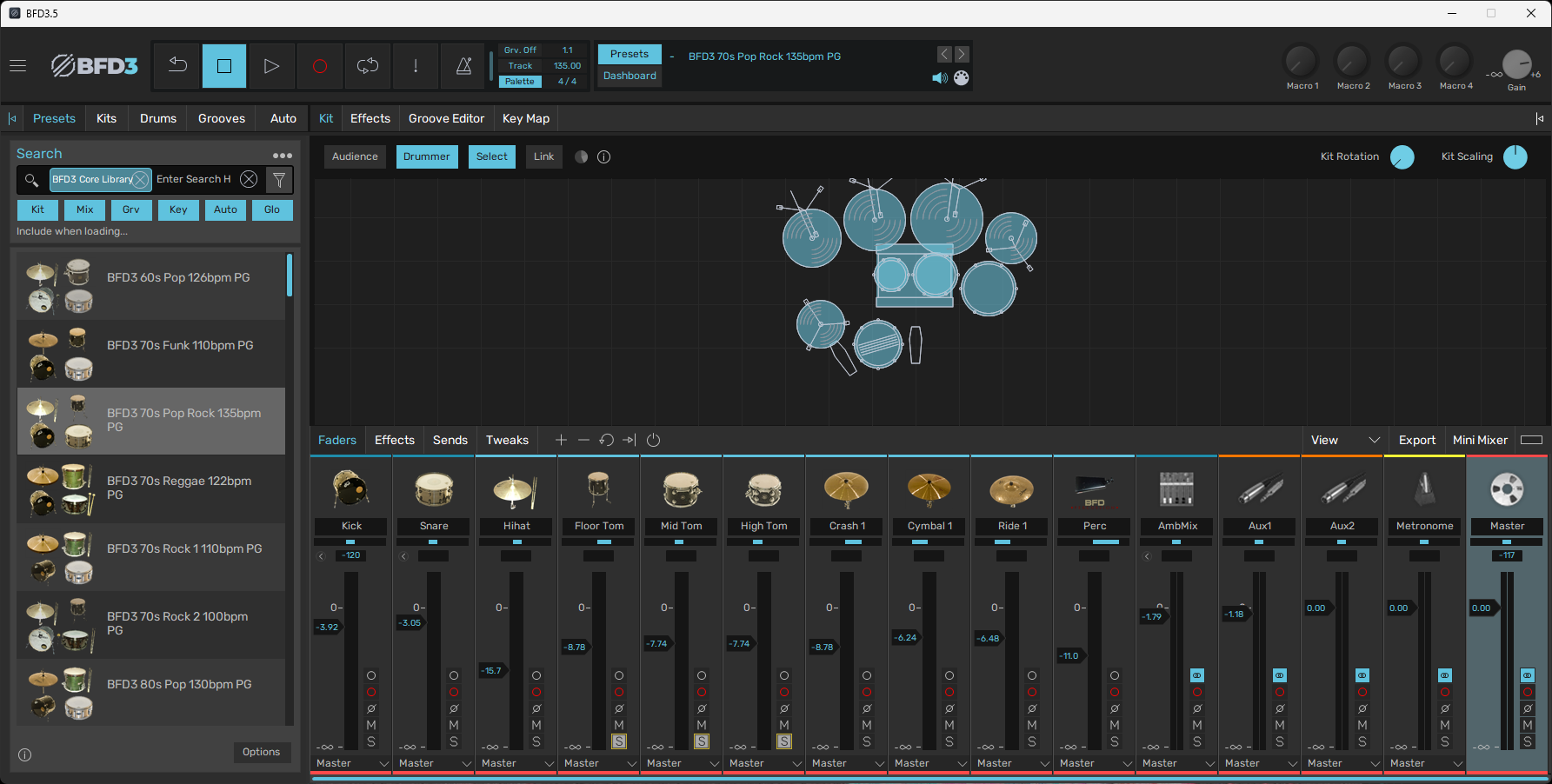 BFD 3.5 también presenta compatibilidad con Apple Silicon AAX, compatibilidad con VST 3 multiplataforma y un nuevo panel inspector de micrófono. Los usuarios también pueden beneficiarse de controles de parámetros con muchas funciones, lo que les permite ajustar cada detalle de sus kits de batería con precisión.