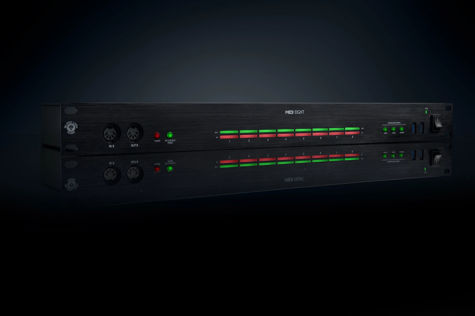 Alojado en una elegante carcasa de aluminio negro con un vibrante monitor MIDI LED, MIDI Eight aporta estilo y claridad a cualquier rack de equipos. Es robusto, fiable y sorprendentemente atractivo: Black Lion Audio ha logrado algo que pocos creían posible: hacer del MIDI algo atractivo.
