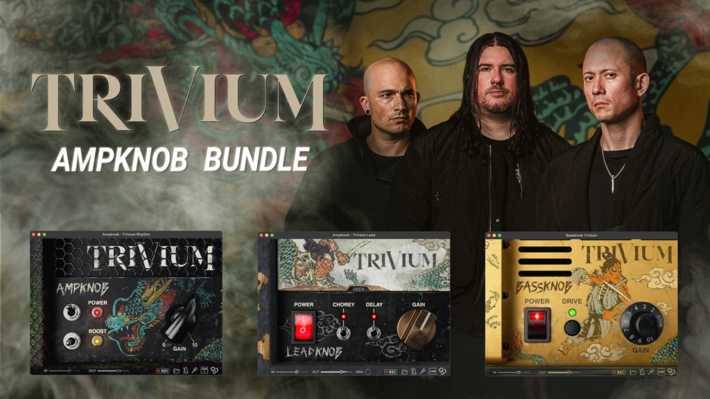 Los plugins fueron desarrollados por el productor Jens Bogren y su equipo de magos digitales, en estrecha colaboración con los portadores de hachas de Trivium: Matt Heafy, Corey Beaulieu y Paolo Gregoletto. Esto garantiza que Trivium Ampknob Bundle cumpla con los altos estándares de la banda, brinde precisamente el sonido que la banda desea y que los tres plugins funcionen bien juntos para crear un efecto poderoso.