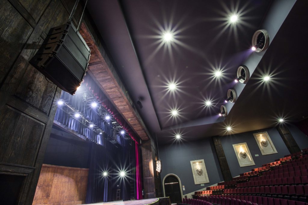 La sala del teatro tiene una gran altura y es de forma rectangular, y el escenario se encuentra en una de las líneas de base, es decir, la cara más larga. Estas características representaron un reto para GeneSist, pues el objetivo era lograr una cobertura total, sin “huecos de sonido”. Para resolverlo se diseñó una solución con un arreglo lineal ShowMatch con cuatro módulos y un subwoofer por lado, además de un altavoz RoomMatch Utility como refuerzo sonoro al centro. “El sistema ShowMatch resultó ideal por su amplia cobertura horizontal y, aunque la sala es muy alta, sus módulos ofrecen diversos ángulos de cobertura, así que con un adecuado diseño pudimos alcanzar hasta la última butaca con impecable fidelidad y sobrado nivel de presión sonora,” explica Fidel Molina.