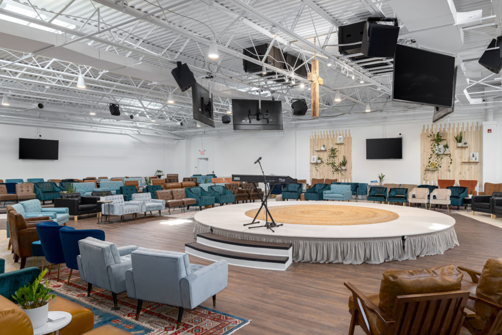 Al considerar el significado de la comunidad y cómo incorporar este concepto en toda su iglesia, el pastor Kyle Horner y su equipo buscaron maneras de crear una sensación familiar y comenzaron reconfigurando el espacio del santuario. El santuario cambio la forma de realizar sus reuniones y en lugar de mantener el punto focal (escenario, pantallas, grupo musical) de cada servicio al frente de la sala lo reubicó al centro de la misma, justo en el punto medio de sus reuniones, lo que permite que más personas hagan contacto visual e interactúen tanto con los pastores como con los congregantes.