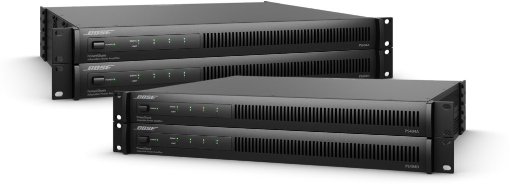 Bose Profesional amplía su línea de amplificadores de potencia adaptable PowerShare con 2 nuevos modelos: PS404D y PS604D, ambos con tecnología Dante integrada, y que se unen a los modelos recientemente presentados con conectividad AmpLink, PS404A y PS604A.