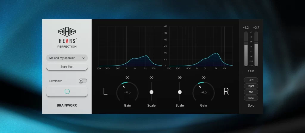¿Le interesa conocer su capacidad auditiva? Pruebe HEARS Perfection, un innovador plugin desarrollado por Brainworx en colaboración con el equipo de HEARS. Tras una breve prueba auditiva inicial, los ingenieros de audio pueden añadir el plugin HEARS Perfection a su canal maestro, lo que les permite tener la seguridad de que sus decisiones creativas se basan en el sonido real, no en las limitaciones de su audición.