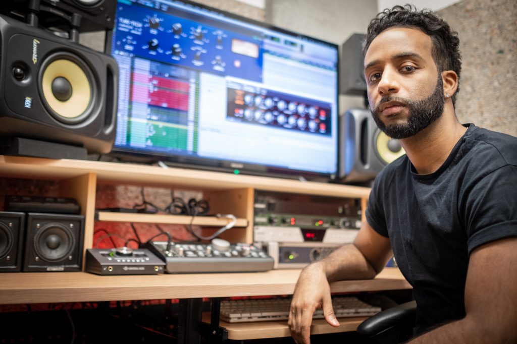 Las especialidades sonoras de King nacieron principalmente de su pasión como oyente, algo que finalmente lo atrajo a la ingeniería cuando comenzó a explorar sus opciones de carrera después de la graduación. Sin desanimarse por el hecho de que no tocaba un instrumento, quería aprender cómo se componía la música que tanto amaba. “No tuve más experiencia que solo escuchar y disfrutar”, dijo. “Pero siempre estuve tan involucrado en la música y seguí volviendo a ella, así que eso me llevó a ir al Bloomfield College en Nueva Jersey por las tecnologías musicales”.