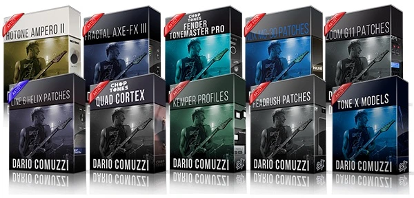 Gracias al Dario Comuzzi Signature Pack de ChopTones, quienes tengan cualquier modelador de amplificadores de guitarra, ya sea el Axe-Fx III Mark II de Fractal Audio System, con un precio de cuatro cifras y autoproclamado como el procesador más potente del mundo para guitarra, bajo y otros instrumentos o el TONEX de IK Multimedia, disponible como un ecosistema más práctico, por nombrar solo algunos de fabricantes destacados como Fender, Headrush, Kemper y muchos más, pueden adentrarse en el mundo de Dario Comuzzi.