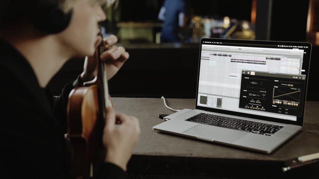 Digitaize Connect, la aplicación de software que conecta Digitaize String Module y el Smart Violin con las configuraciones digitales, funciona como un centro neurálgico para recibir MIDI y audio de los instrumentos y enviarlo a cualquier software de destino. Los datos MIDI del instrumento (incluidos todos los sensores integrados) se pueden controlar y enviar fácilmente a través de Bluetooth MIDI o el modo WAM (incluida la transmisión de audio inalámbrica). Un plugin VST3 adicional envía la señal de los micrófonos integrados directamente a cualquier DAW, lo que permite una integración perfecta para presentaciones en vivo y grabaciones en estudio. La arquitectura de transmisor-receptor y el modo WAM patentado garantizan un rendimiento de latencia ultra baja y un audio inalámbrico de alta calidad.