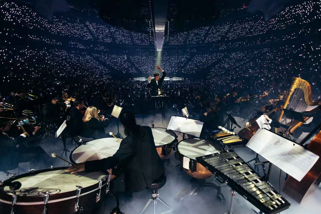 “Benito (Bad Bunny) ama todos los estilos de música y decidió abrir su álbum con un sonido clásico”, explica López. “Así que compuse música orquestal para que la usara con ‘Nadie Sabe’ y la grabé con orquesta completa en Praga. Después, a partir de esa colaboración y mientras producía la canción, Benito decidió que quería llevar una orquesta completa de gira y me pidió que la dirigiera. También me pidió nuevas piezas orquestales para abrir el espectáculo, las cuales completé en tan solo unos días”.