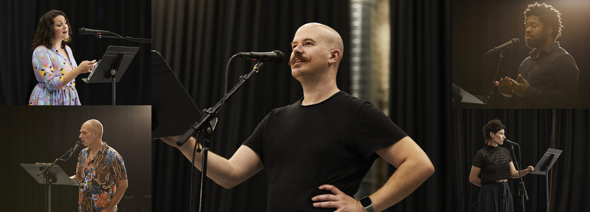 “Los d:facto fueron perfectos para nosotros”, dice Squires. “Roomful of Teeth es principalmente un acto en vivo, por lo que están acostumbrados a la amplificación y a tener un micrófono vocal de mano en un soporte directamente frente a ellos. Quería encontrar una solución que aún se ajustara al aspecto de los micrófonos de mano a los que estaban acostumbrados, pero con una mayor fidelidad. El d:facto se sintió familiar para los cantantes, lo que permitió que todas las técnicas de micrófono para su canto armónico y yodel se tradujeran directamente, al mismo tiempo que les brindaba un sonido más abierto. Golpear esas notas más altas y escuchar los armónicos también es más fácil con un d:facto que con un micrófono dinámico. Escuchan todos los sonidos de rango medio superior que pueden buscar y los golpean más fácilmente. Los cantantes tuvieron un gran impulso después de escuchar los micrófonos, literalmente, cada uno de los artistas dijo: ‘necesitamos estos micrófonos'”.