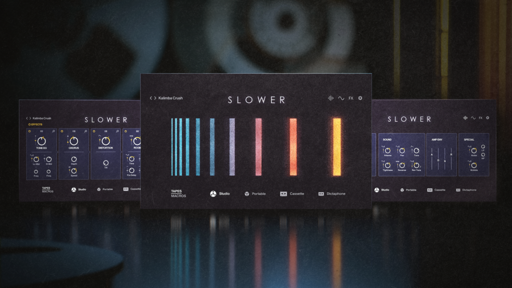 Diseñado para quienes buscan texturas emocionales inspiradas en lo analógico, SLOWER se adentra en el mundo de la cinta a media velocidad para ofrecer una gama extraordinaria de sonidos. La biblioteca presenta una mezcla ecléctica de teclados, guitarras, cuerdas, instrumentos de viento de madera, metales y rarezas como el dulcimer y el armonio. Estos sonidos se transforman mediante el proceso de grabación a media velocidad, lo que hace que todo suene una octava más bajo para producir tonos profundos, cálidos y nostálgicos, disponibles en cuatro tipos distintos de máquinas de cinta: estudio, portátil, casete y dictáfono.