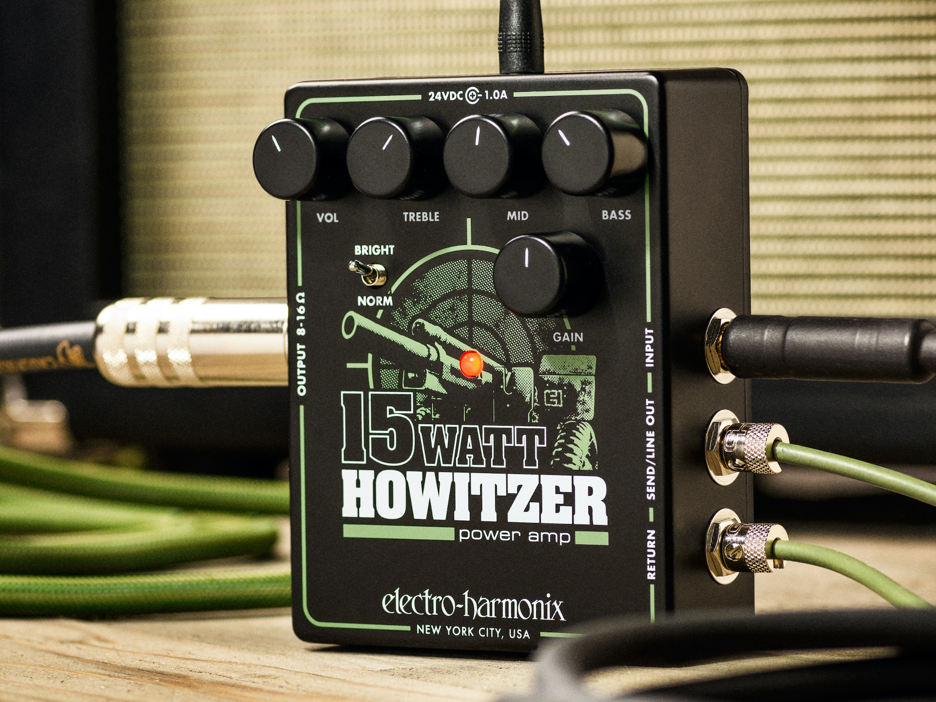 El fundador de EHX, Mike Matthews, dijo: “¡Anímate! El 15Watt Howitzer del tamaño de un sándwich es perfecto como parte de una plataforma de guitarra compacta o de respaldo. Pero lo que más me gusta es el tono que emana del Howitzer. Es súper versátil y, según el tipo de configuración que esté ejecutando, ¡se adapta a cualquier estilo!”