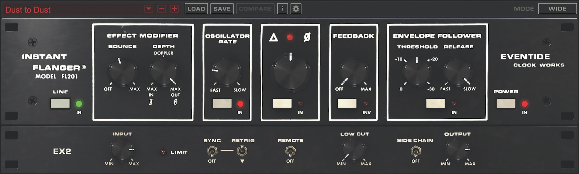 - Control de bloqueo MIX para desplazarse por los presets de fábrica mientras se mantiene constante la MIX wet/dry.