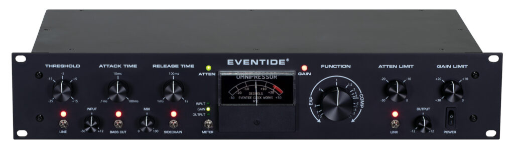 En 1973, Eventide Clockworks presentó el Omnipressor, el primer producto de estudio que fomentaba el uso de dinámicas para efectos especiales. Se unió al Instant Phaser y, poco después, al Instant Flanger en estudios de todo el mundo. Todos se utilizaron en innumerables grabaciones y ahora se consideran productos verdaderamente clásicos. A diferencia del Phaser y Flanger, el Omnipressor, con su inversión dinámica aún única, compresión infinita, puerta variable y “sidechain” separada, se suspendió unos años más tarde. Se había vuelto difícil obtener algunas piezas exclusivas y aún más difícil explicárselo a una industria que era mucho menos sofisticada de lo que es hoy.