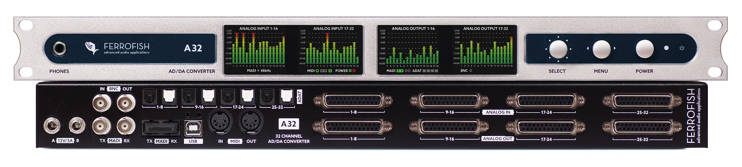 Con su gran cantidad de opciones de E/S, la nueva serie A32pro también puede funcionar como un conversor de formato de audio digital y un router de señal altamente flexibles. Las señales de audio se pueden convertir libremente entre todos los formatos analógicos y digitales mientras se rutean simultáneamente a múltiples destinos en bloques de 8 canales, lo que permite su uso en una amplia gama de aplicaciones de audio profesional. Se pueden conectar varias unidades Ferrofish en serie para proporcionar una cantidad increíble de canales de audio en una cantidad comparativamente mínima de espacio de rack, ya que las fuentes de alimentación redundantes garantizan la confiabilidad necesaria para las aplicaciones de “misión crítica”.