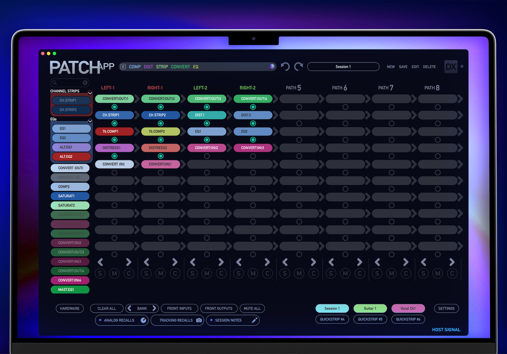 Desde su lanzamiento en 2022, PATCH APP DX ha ofrecido una profunda evolución en la gestión, el control y la documentación de hardware para las pacheras de la serie PATCH. A partir de la interfaz rápida y fácil de usar de PATCH APP, DX amplió el conjunto de funciones para incluir compatibilidad con dispositivos móviles, modo de administración de hardware para guardar notas y fotografías de la configuración del hardware, integración completa de red y, con DX Bridge, integración del DAW. En los dos años transcurridos desde entonces, Flock ha prestado mucha atención a los comentarios de los clientes e ha integrado todo esto y más en PATCH APP DX 1.1.0, con especial atención en las funciones de organización, personalización y navegación de la aplicación.