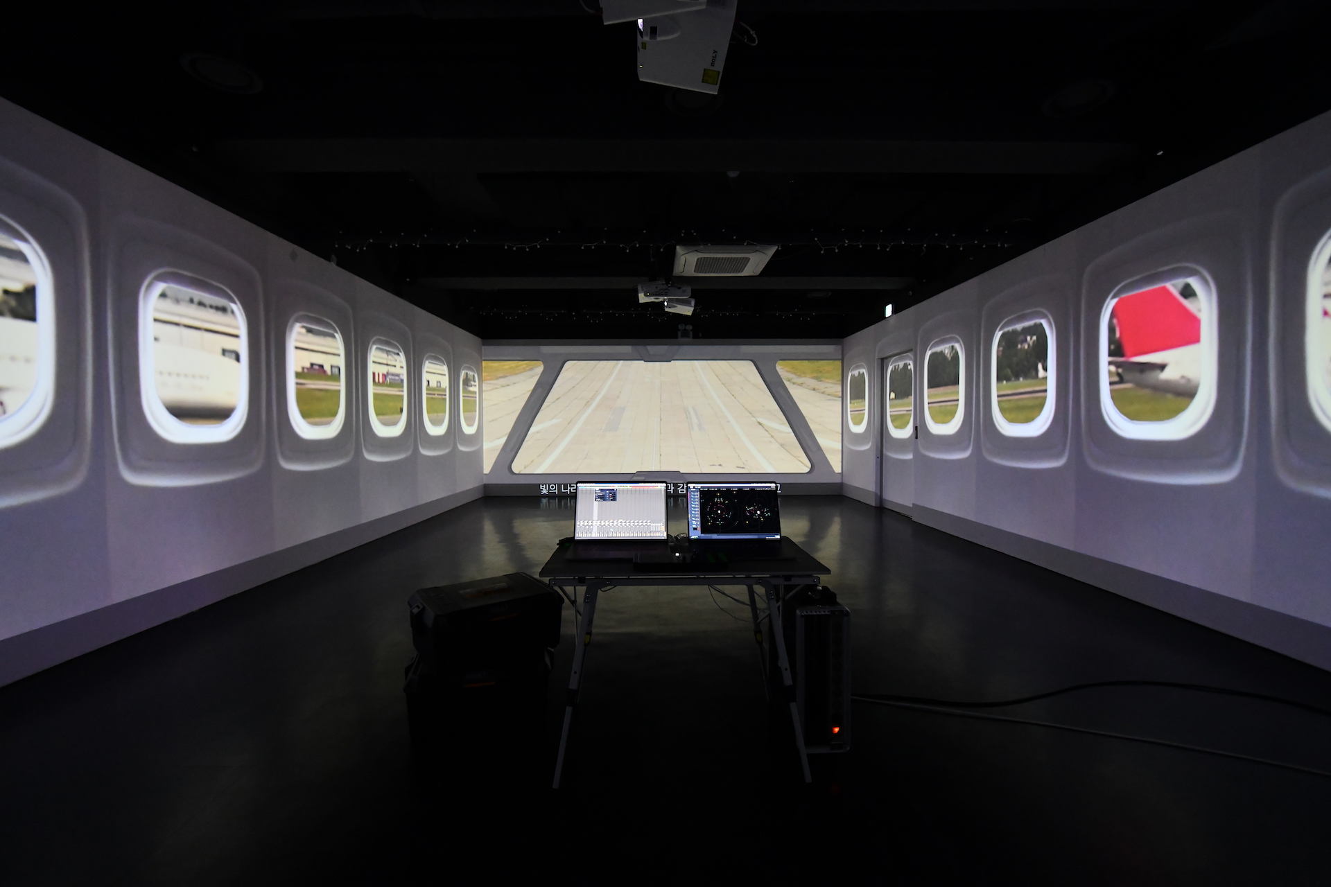 Myungsung Nano Systems ha creado un sistema inmersivo que implementa una configuración de audio de 12.1 canales diseñada por Dohyung Kim, con música y sonido diseñados por el músico electrónico Joonha Kim. Un total de 12 altavoces HMH de 6 pulgadas cubren la habitación, junto con un solo subwoofer HMH. Los altavoces se colocan a lo largo de dos paredes, con SPAT localizando el sonido para una amplia gama de actuaciones inmersivas. “Con la configuración de la red, podemos ejecutar la transmisión de audio y OSC a la vez, lo que facilita la configuración del sistema, así como el envío y la recepción de señales multicanal de alta calidad”, observa Dohyung Kim. “También es interesante encontrar el protocolo de transmisión óptimo en función de cada ubicación. Con aproximadamente 32 fuentes, pudimos operar con solo dos MacBook Pros, una aplicación de reproducción y procesamiento. Esto me permitió mezclar y realizar varias otras tareas a través de una sola terminal LAN e interactuar directamente con videos de 360 grados durante la preproducción”.