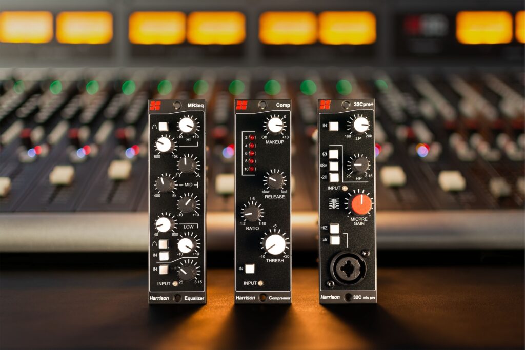 El 32Cpre+, que cuenta con los famosos filtros de paso alto y paso bajo de Harrison, incorpora el mismo preamplificador de micrófono acoplado por transformador que la nueva consola analógica 32Classic, cuyo diseño deriva de la legendaria consola 32C de la marca, presentada en 1975. El MR3eq, que incluye un filtro de paso alto, se basa en el diseño paramétrico de 3 bandas desarrollado originalmente para la consola MR3 de Harrison, que se presentó en 1981. El compresor Comp debe su diseño a las décadas de experiencia de la empresa en el diseño de procesamiento de señales.