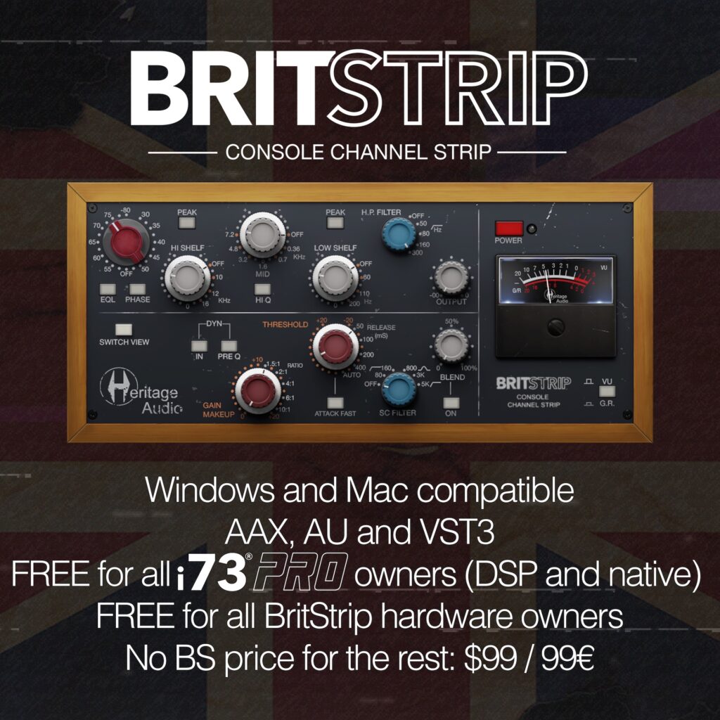 Sin embargo, es interesante señalar aquí que cuando Heritage Audio diseñó por primera vez el plugin BritStrip, era la combinación perfecta para su innovadora familia i73® PRO de interfaces de audio USB-C, ya que se combina a la perfección con sus preamplificadores estilo 73 de clase A integrados. Dicho de otro modo: cuando los evaluadores comenzaron a probar el plugin nativo, pronto vieron el potencial que tiene BritStrip en sí mismo; en efecto, se planteó la pregunta de si BritStrip es en realidad un BritStrip sin el preamplificador característico de Heritage Audio. Es justo decir que, para evitar responder a la pregunta, el desarrollador de equipos de grabación de sonido vintage decidió, por primera vez, modelar su preamplificador estilo 73 en una segunda versión de BritStrip, de modo que, según sus necesidades, los usuarios puedan decidir si quieren utilizar la versión “más ligera” probada inicialmente sin el preamplificador o la versión “completa” con el preamplificador estilo 73 característico antes mencionado, modelado a la perfección.
