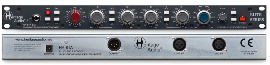 El fabricante europeo de audio profesional Heritage Audio anunció la disponibilidad de su HA-81A, un channel strip híbrido de especificaciones británicas que representa la última incorporación a su gama ELITE SERIES, De alta calidad pero accesible, una mezcla completamente nueva de dos consolas clásicas, que combina un preamplificador de micrófono de clase 73 con un aclamado ecualizador de estilo 81, posiblemente los productos más demandados por cualquier ingeniero de grabación que se esfuerce por crear un sonido instantáneamente clásico.