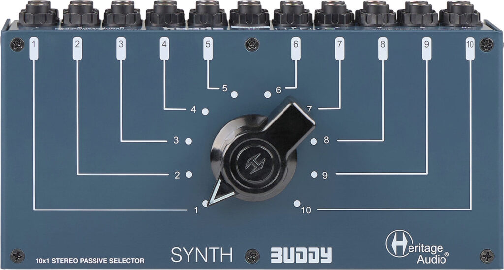 El fabricante europeo de audio profesional Heritage Audio anunció la disponibilidad de SYNTH BUDDY, el primer switch estéreo de escritorio 10 a 1 reversible y totalmente pasivo del mundo. Una solución de estudio esencial y rentable para conectar sin problemas hasta 10 fuentes de nivel de línea estéreo (o 20 mono), como sintetizadores, cajas de ritmos o samplers, y alternar entre ellas con solo girar un botón.