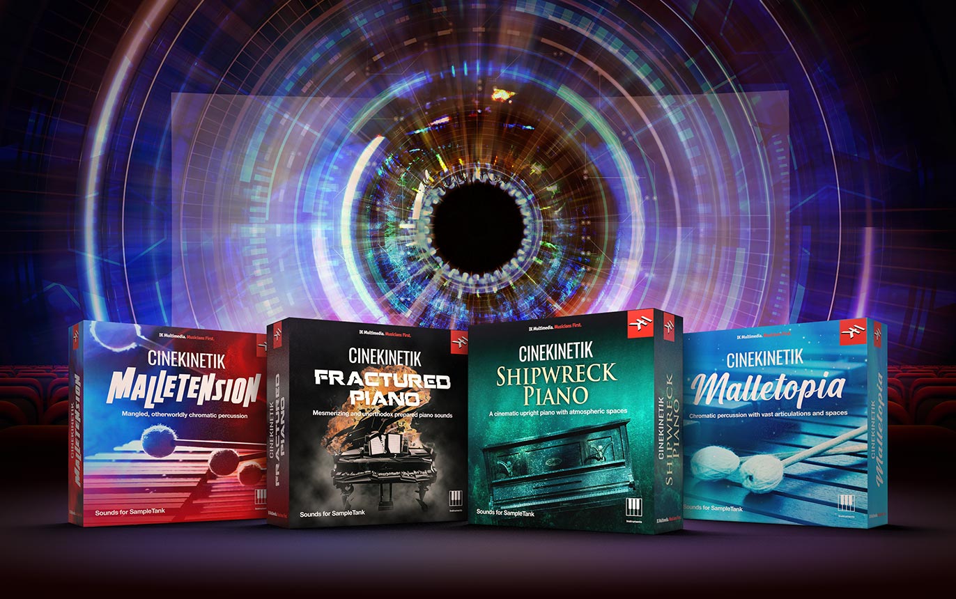 IK Multimedia lanza Cinekinetik, una colección de cuatro bibliotecas de sonido nuevas y únicas para SampleTank, cada una creada para invocar una sensación de asombro, misterio o suspenso en la mente del oyente. Estas bibliotecas juntas ofrecen un ahorro significativo en comparación con la compra individual y una fuente de inspiración profunda para energizar el trabajo de cualquier compositor con texturas y sonidos frescos y evocativos en más de 24 GB de contenido de muestras y 250 presets de instrumentos de SampleTank 4.