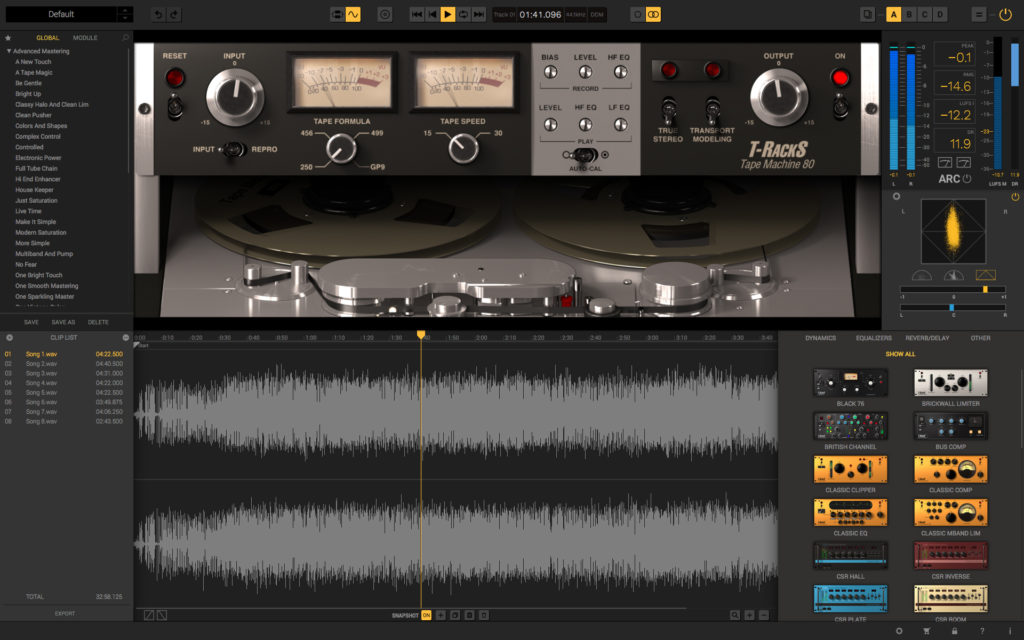 Este modelo funciona en simbiosis con un potente motor de convolución dinámica para capturar toda la esencia de las máquinas reales, y la Colección T-RackS Tape Machine pone fielmente toda esta magia en cualquier DAW.