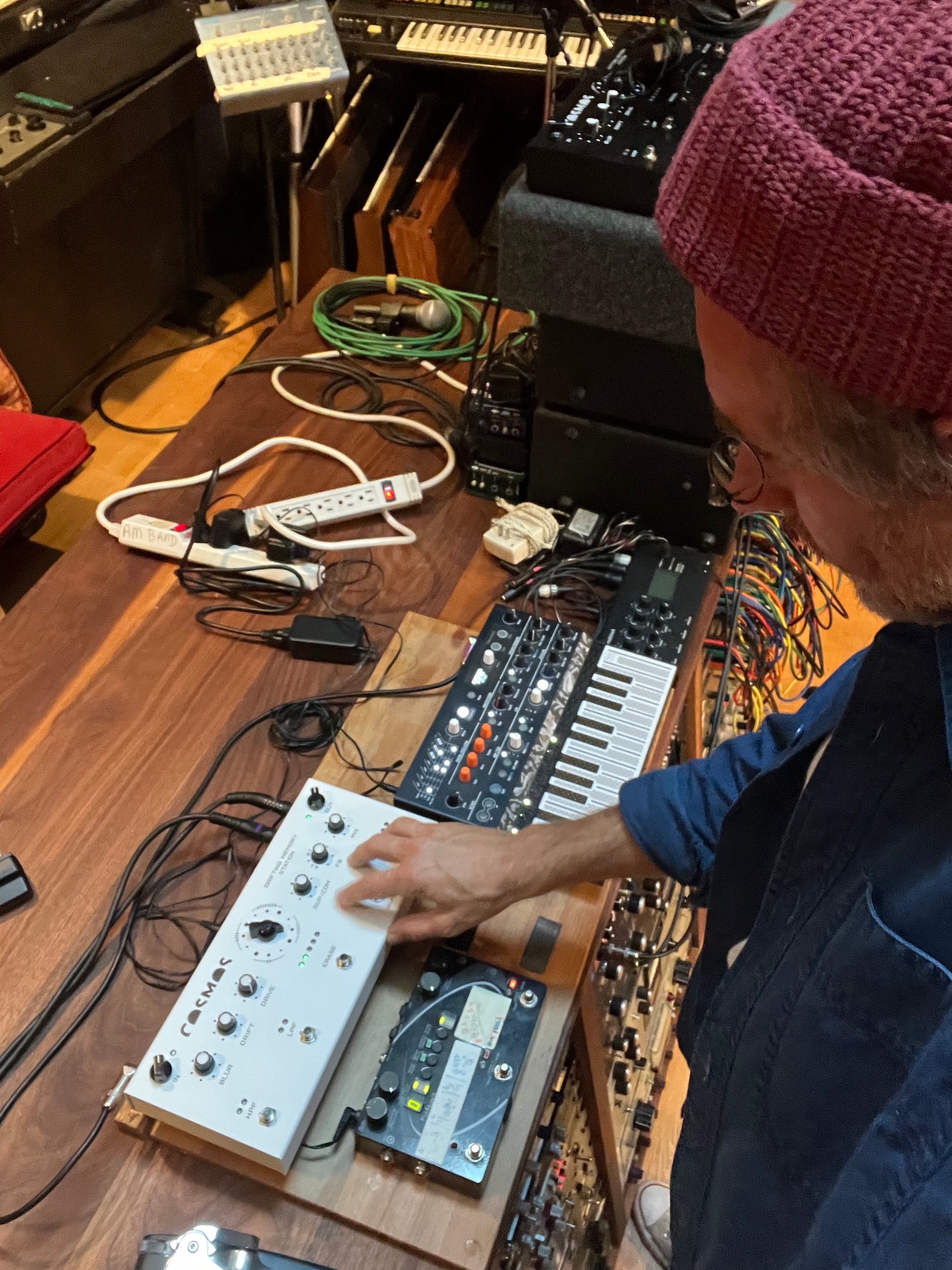 Dice que en el estudio tiene una unidad conectada a su envío y retorno de efectos: “Mantengo un COSMOS conectado de la misma manera que tendrías un echoplex, una reverberación de placa o un eco de cinta Roland”, dice. “Mi COSMOS simplemente tiene que estar ahí como un efecto de estudio al que siempre se le puede conectar porque puedes poner cualquier cosa a través de él: una voz, una guitarra o cualquier otro instrumento. Además, tiene su propio sonido único. Si alguna vez estás estancado creativamente ya sea en la interpretación o incluso en una mezcla, simplemente lanza algo a través de COSMOS, quién hará algo inesperado y no necesita nada más. Solo tiene que ser pacheado”.