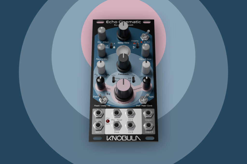 El innovador de la música electrónica Knobula presenta Echo Cinematic, el último módulo Eurorack que encarna su filosofía sin pantalla ni preajustes. Una unidad de efectos estéreo práctica y con todas las funciones que se inspira en la influyente cultura de la música dub que surgió en Jamaica y dejó su huella en la escena musical de Londres a principios de los años ochenta, se presenta en SUPERBOOTH24, del 16 al 18 de mayo, FEZ-Berlín, Alemania.