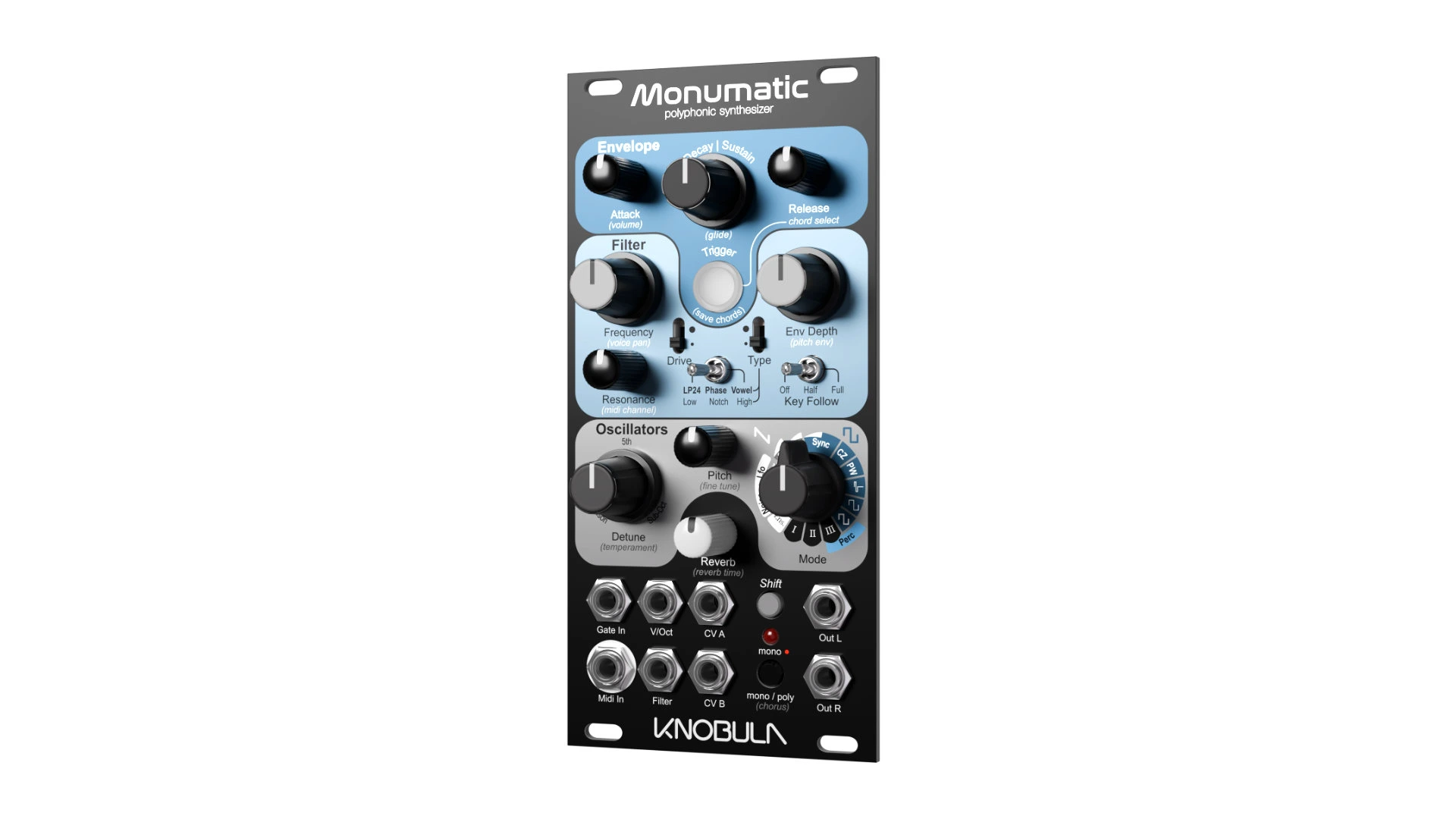 Knobula, innovador en síntesis modular Eurorack, anuncia la disponibilidad de Monumatic, el último producto que encarna su filosofía de “sin pantalla ni presets”, materializada a la perfección como un sintetizador totalmente polifónico de ocho voces y un sintetizador monofónico, implementado en un compacto módulo Eurorack de 12 HP.