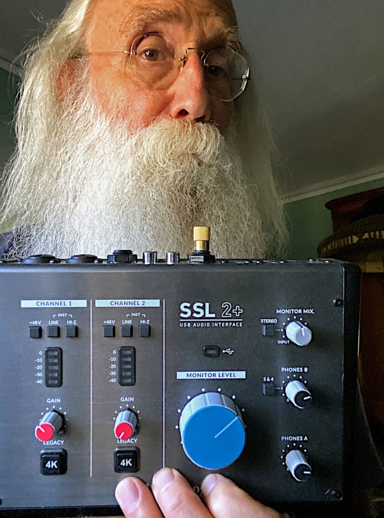 Durante la pandemia actual, “Como todos los demás, estoy encontrando nuevos caminos. Y terminé con una herramienta que parece ser exactamente lo que necesito para hacer las cosas que estaba pensando en hacer”, dice. “¡La interfaz SSL 2+ es la herramienta perfecta para tiempos imperfectos!”