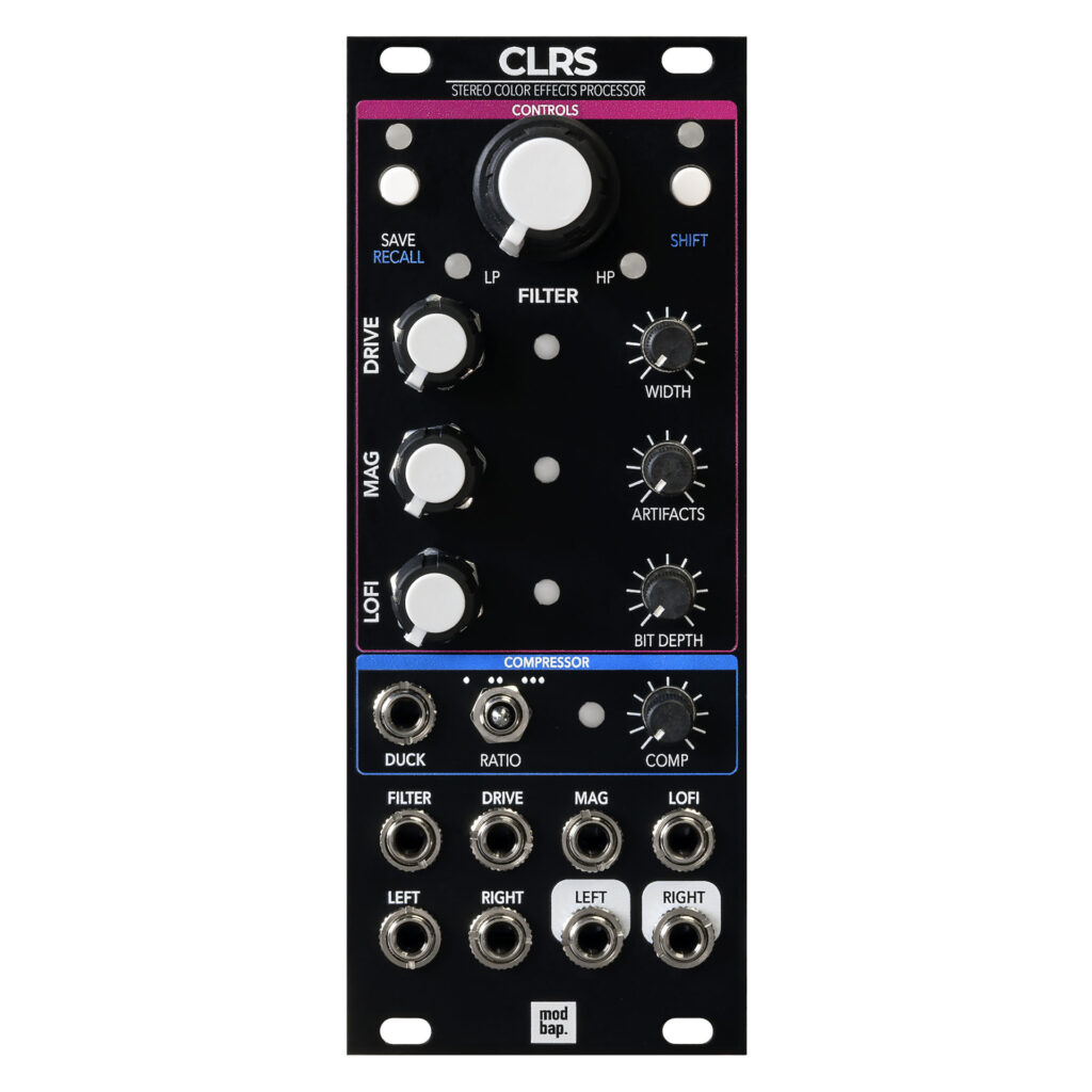 CLRS (pronunciado “colores”) es una reinvención dinámica del módulo de efectos de procesamiento de textura y color de audio HUE de Modbap, diseñado para mejorar y transformar el audio fuente en entornos de estudio y presentaciones en vivo. En formato 10HP y con salida de sonido estéreo completa, CLRS es la herramienta de procesamiento de audio de final de cadena perfecta para artistas que buscan agregar carácter y profundidad a su sonido.
