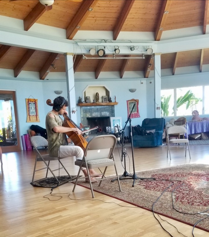 Para su trabajo en “Starlings over Rome”, eligió una sala luminosa y de sonido vivo en la isla de Maui que complementaba la calidad aireada del arreglo de Gusev. Organizando el espacio como lo haría para una actuación de trío en vivo, Bella dice que fue fácil conseguir que Gusev tuviera la mentalidad de actuación adecuada. “Trato de llevar a cada intérprete a un espacio como este que les permita hacer música expresiva y sincera”, dijo. “Para Georgy, fue un hermoso espacio acústico redondo que configuramos para que fuera como una actuación en vivo, el lugar perfecto para una pieza como esta”.