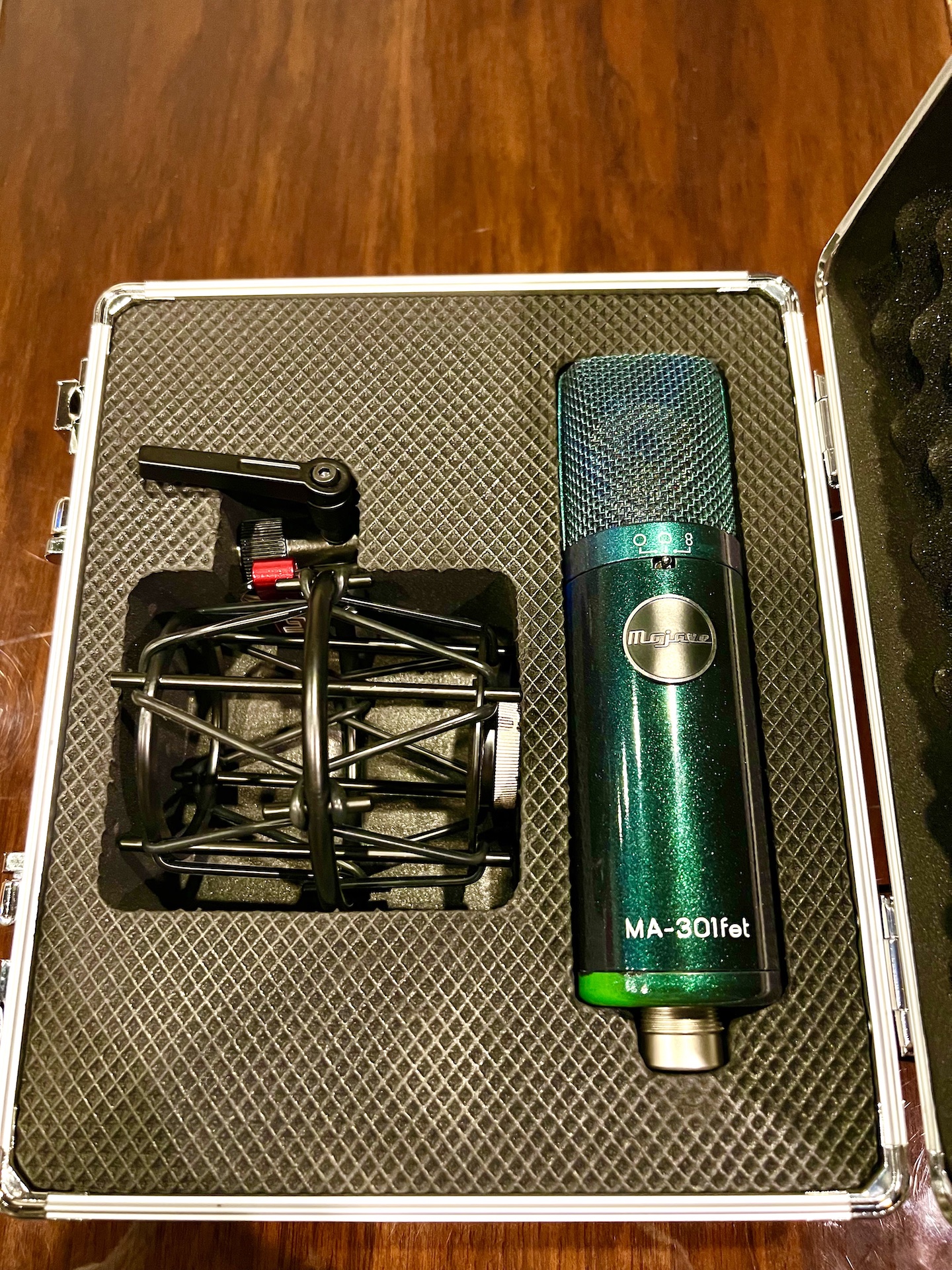 El micrófono de condensador MA301fet pintado a medida en verde galáctico (acabado a medida por el jefe de tecnología de Mojave Audio, John Nuss) es una valiosa adición a la colección de cualquier productor musical. Conocido por su calidad de audio nítida y detallada, el MA301fet es uno de los favoritos entre los mejores profesionales de grabación de la industria. Esta versión personalizada presenta un cambio de color verde espacial que cambia según la iluminación.