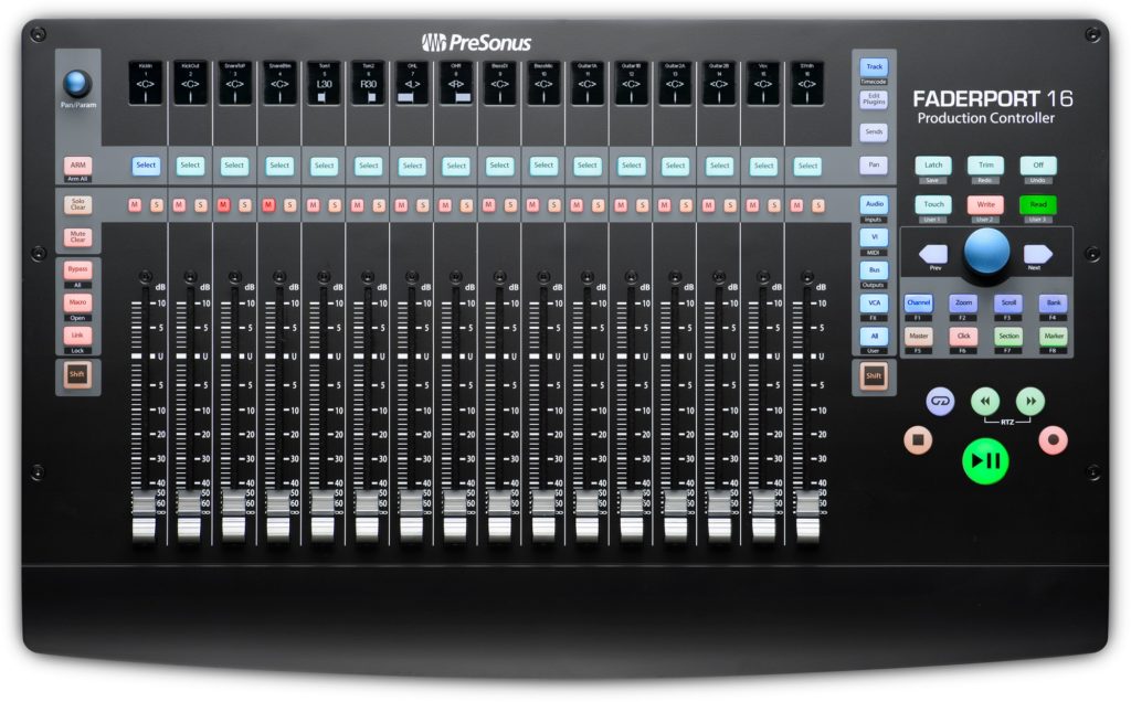 El último modelo en la serie de superficies de control FaderPort de Presonus, rico en características y fácil de usar, el FaderPort 16 Mix Production Controller se conecta mediante USB 2.0 para proporcionar un control táctil preciso sobre una mezcla DAW y funciones de automatización, incluida el control de transporte completo. La nueva superficie de control ofrece control de nivel completo, solo y mute en 16 canales a la vez, con 16 faders motorizados de 100mm sensibles al tacto y 89 botones que cubren 102 funciones diferentes. Se puede hacer un rápido zoom en los archivos de audio para editarlos, ajustar el ritmo de clics con un simple toque, modificar los parámetros del plug-in, administrar las mezclas auxiliares y por supuesto, controlar los niveles de las pistas con el toque de un dedo.