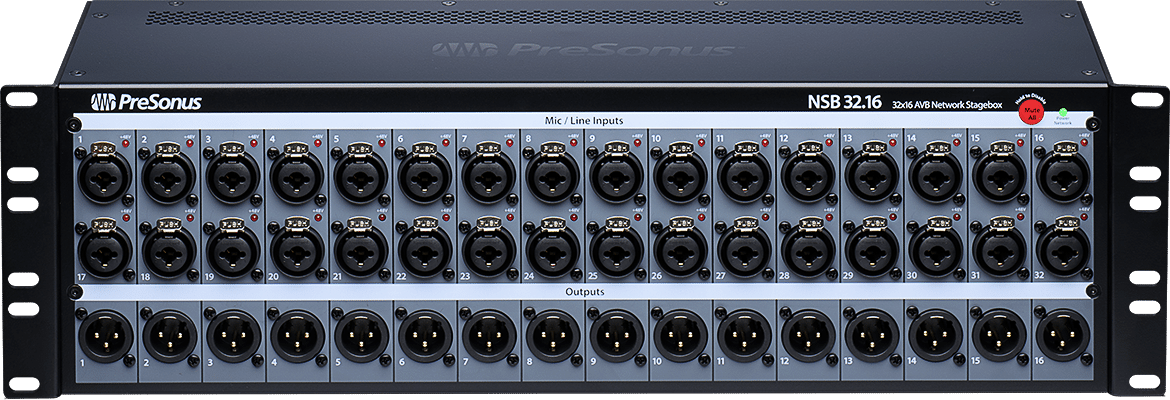 PreSonus Audio Electronics, Inc. anunció el lanzamiento mundial de su caja de escenario en red AVB NSB 32.16 32×16 para mixers PreSonus® StudioLive® Serie III, la última incorporación al ecosistema StudioLive de productos AVB en red. Al igual que con las cajas de escenario NSB 16.8 y NSB 8.8 de PreSonus, la NSB 32.16 entrega señales hacia y desde una red Ethernet AVB a través de un cable CAT5e o CAT6 y permite la expansión de los mixers StudioLive Serie III que tienen E/S analógicas integradas limitadas a un total de 32- o sistema de mezcla de 64 entradas. Un conmutador AVB de dos puertos integrado permite conectar en cadena varias unidades.
