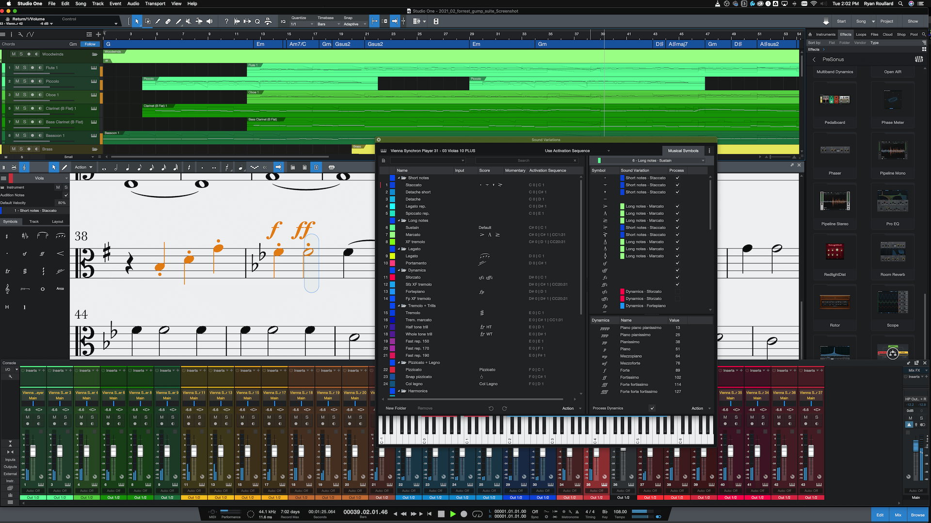 Con la incorporación de la reproducción de símbolos musicales en Studio One 5.3 Professional, los compositores que trabajan en Score View o Piano View ahora pueden conectar símbolos musicales y marcas dinámicas a Sound Variations, que se introdujeron en la versión 5.2. La reproducción de símbolos musicales funciona con cualquier biblioteca orquestal que tenga las articulaciones correspondientes. Una nueva pestaña en el editor de mapeo de Sound Variations permite mapear símbolos a Sound Variations usando la función de arrastrar y soltar, simple e intuitiva, o mediante mapeo automático basado en los nombres de Sound Variation del instrumento seleccionado actualmente. Un nuevo carril de símbolos musicales para el editor de notas le permite ver símbolos y eventos Sound Variation uno al lado del otro. Aplique símbolos musicales en el Editor de notas o en la Vista de partitura y se reproducirán con precisión en ambos. El mapeo de salida de Sound Variations se ha ampliado para incluir información del canal MIDI como parte de la secuencia de activación, lo que permite que los instrumentos virtuales, como Kontakt de Native Instruments, aborden articulaciones específicas.